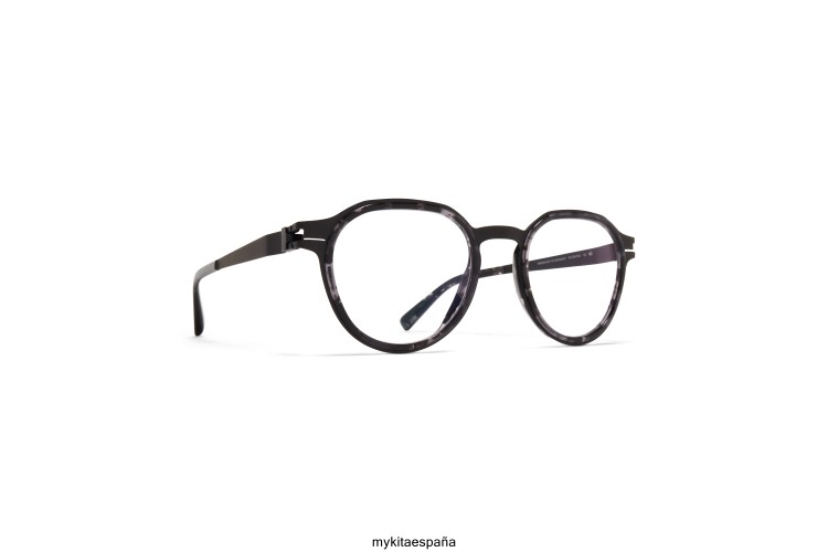 Fabricado en acero inoxidable liviano, en color a50-black/black havana con lentes transparentes, es un marco óptico en forma de panto de la colección de anillos de acetato de mykita. hecho a mano en berlín.