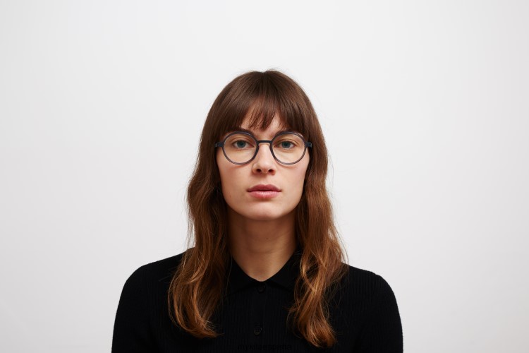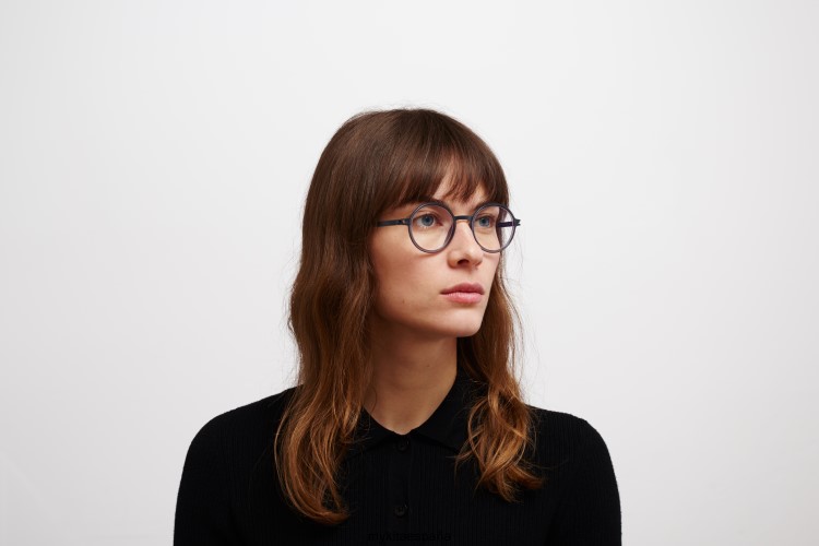 Hecho de acero inoxidable liviano, dayo en índigo/océano profundo con lentes transparentes es un marco óptico de forma redonda de la colección de anillos de acetato de mykita. hecho a mano en berlín.