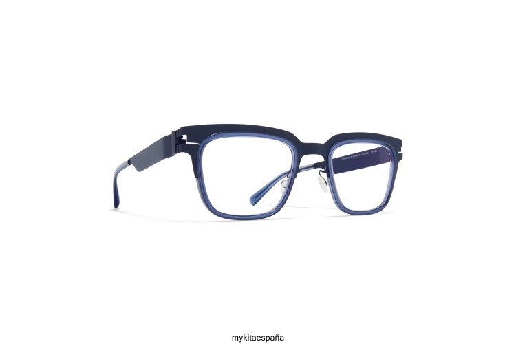 fabricada en acero inoxidable ligero, raymond en a62-indigo/deep ocean con lentes transparentes es una montura cuadrada de la colección de anillos de acetato de mykita. hecho a mano en berlín.