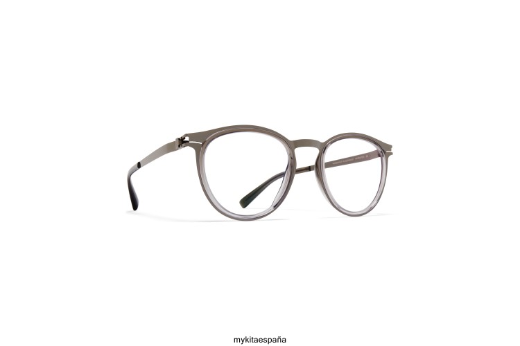 Hecho de acero inoxidable liviano, siwa en degradado gris/grafito brillante con lentes transparentes es un marco óptico en forma de panto de la colección de anillos de acetato de mykita. hecho a mano en berlín.