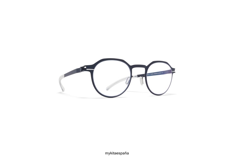fabricada en acero inoxidable liviano, armstrong en índigo con lentes transparentes es una montura óptica en forma de panto de la colección décadas de mykita. hecho a mano en berlín.
