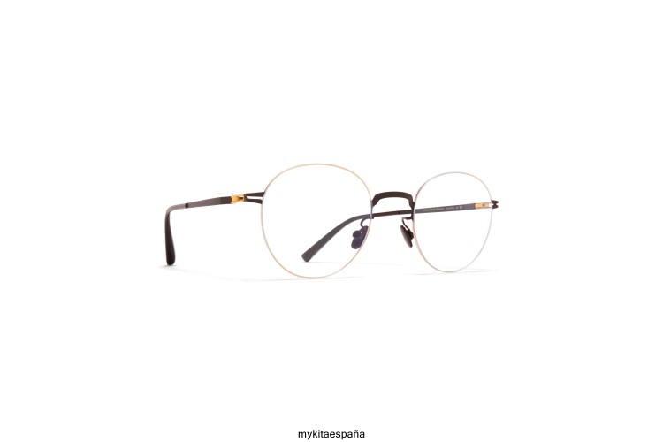 Hecho de acero inoxidable ultraligero, akemi en dorado/marrón oscuro con lentes transparentes es un marco óptico en forma de panto de la colección Mykita Lessrim. Con solo 0,5 milímetros de ancho, el borde de acero inoxidable se encuentra al ras en la ranura del perímetro de la lente. hecho a mano en berlín.