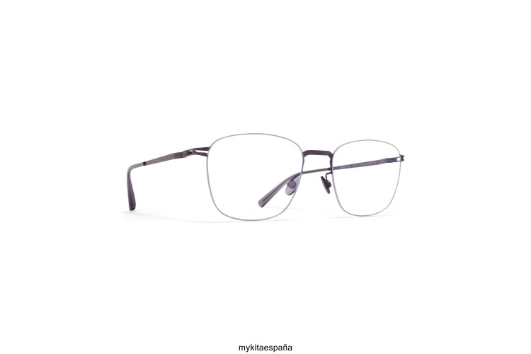 fabricado en acero inoxidable ultraligero, haru en mora/gris cinerous con lentes transparentes es un marco óptico de forma cuadrada de la colección mykita lessrim. Con solo 0,5 milímetros de ancho, el borde de acero inoxidable se encuentra al ras en la ranura del perímetro de la lente. hecho a mano en berlín.