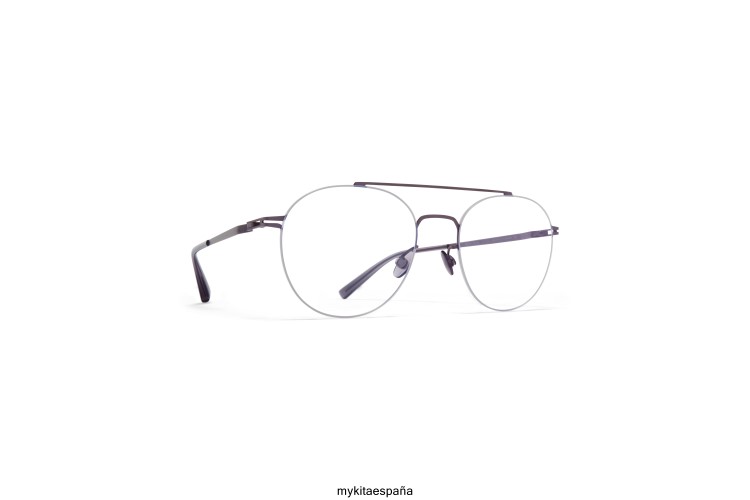 Fabricado en acero inoxidable ultraligero, Yoshi en mora/gris cinerous con lentes transparentes es un marco óptico en forma de panto de la colección Mykita Lessrim. Con solo 0,5 milímetros de ancho, el borde de acero inoxidable se encuentra al ras en la ranura del perímetro de la lente. hecho a mano en berlín.