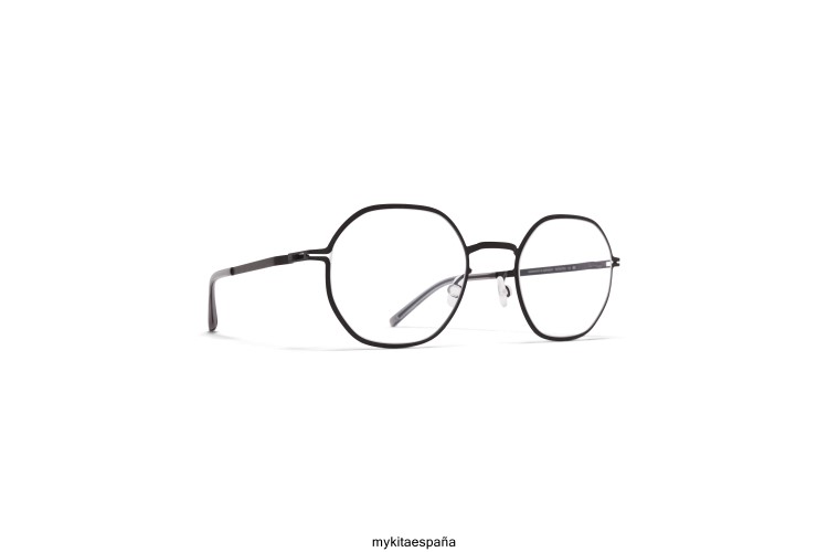 hecho de acero inoxidable liviano con una barra superior de mylon, ml14 en bordes negros/blancos con lentes transparentes es un marco de anteojos de sol en forma de panto de mykita | colección leica. hecho a mano en berlín.