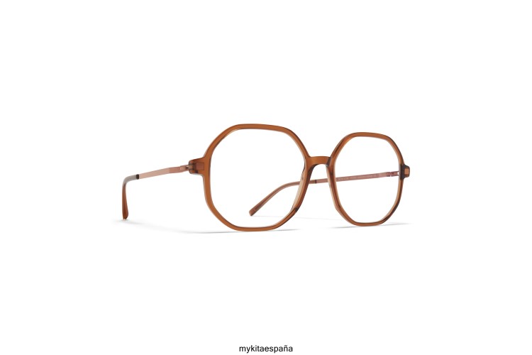 fabricado en acero inoxidable liviano y acetato delgado, hilla en topacio c73/cobre brillante con lentes transparentes es un marco óptico de forma redonda de la colección de acetato mykita lite. hecho a mano en Berlín.