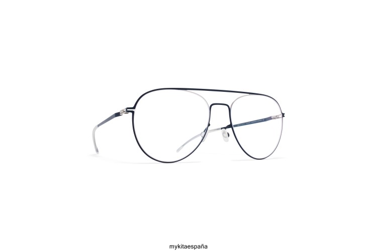Hecho de acero inoxidable liviano, eero en plata/azul marino con lentes transparentes es un marco óptico con forma de aviador de la colección mykita lite. hecho a mano en berlín.