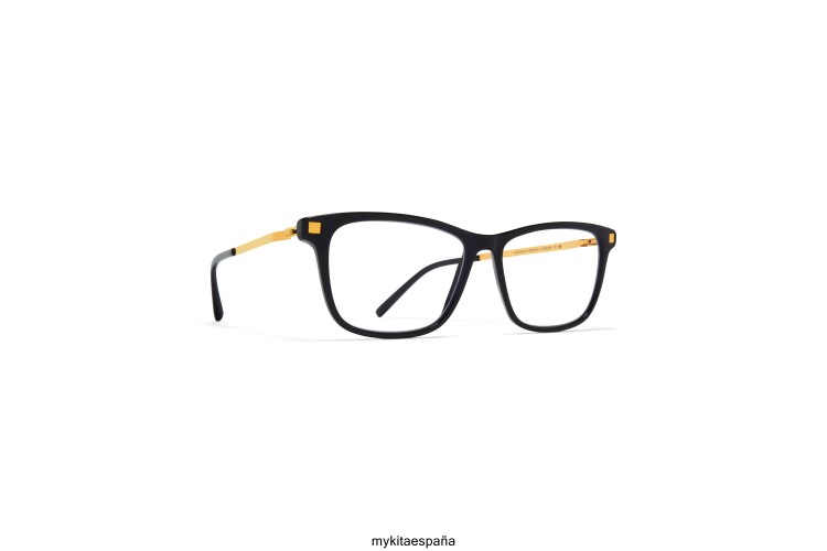 Hecho de acero inoxidable liviano, esja en negro/oro brillante con lentes transparentes es un marco óptico de forma cuadrada de la colección mykita lite. hecho a mano en Berlín.
