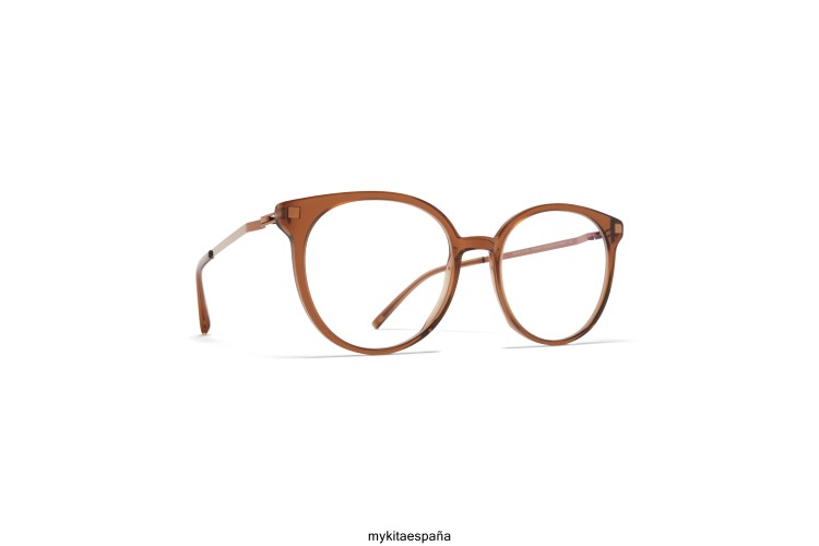 Hecho de acero inoxidable liviano y acetato delgado, julla en topacio c73/cobre brillante con lentes transparentes es un marco óptico en forma de panto de la colección de acetato mykita lite. hecho a mano en Berlín.