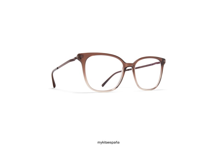 fabricado en acero inoxidable ligero, kalla en marrón degradado/mocca con lentes transparentes es un marco óptico de forma cuadrada de la colección mykita lite. hecho a mano en Berlín.