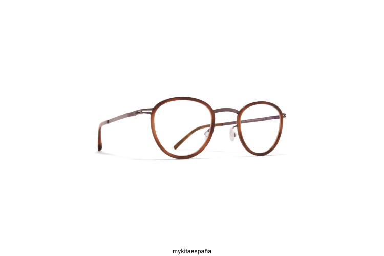 Hecho de acero inoxidable liviano y acetato delgado, kirima en a47 mocca/zanzibar con lentes transparentes es un marco óptico en forma de panto de la colección de acetato mykita lite. hecho a mano en berlín.