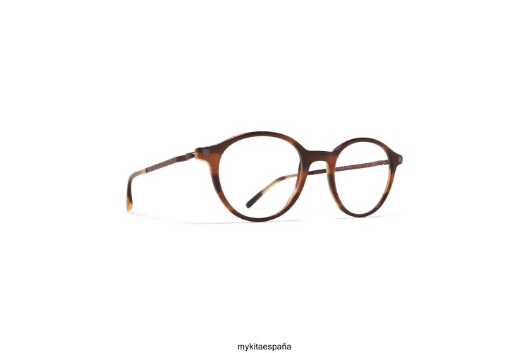 Hecho de acero inoxidable liviano y acetato delgado, kolmar en c175 marrón rayado/moca con lentes transparentes es un marco óptico en forma de panto de la colección de acetato mykita lite. hecho a mano en Berlín.