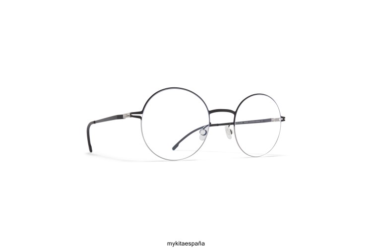fabricado en acero inoxidable ligero, lotta en plata/negro con lentes transparentes es un marco óptico de forma redonda de la colección mykita lite. hecho a mano en berlín.
