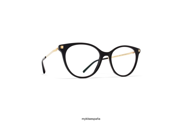 Hecho de acero inoxidable liviano y acetato delgado, el nanook en negro/oro brillante con lentes transparentes es un marco óptico con forma de mariposa de la colección de acetato mykita lite. hecho a mano en Berlín.