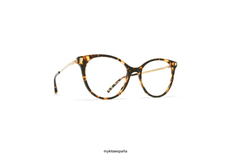 Hecho de acero inoxidable liviano y acetato delgado, nanook en trinidad/oro brillante con lentes transparentes es un marco óptico con forma de mariposa de la colección de acetato mykita lite. hecho a mano en Berlín.