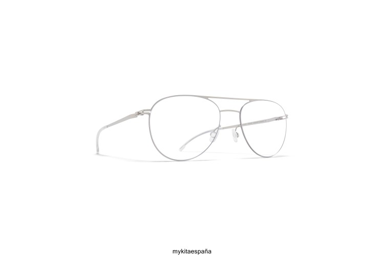 fabricado en acero inoxidable ligero, niken en plata brillante con lentes transparentes es un marco óptico con forma de aviador de la colección mykita lite. hecho a mano en berlín.