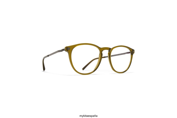 Hecho de acero inoxidable liviano y acetato delgado, nukka en c116 peridoto/grafito con lentes transparentes es un marco óptico de forma redonda de la colección de acetato mykita lite. hecho a mano en Berlín.