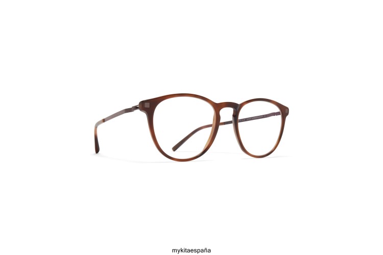 Hecho de acero inoxidable liviano y acetato delgado, nukka en c86 zanzibar/mocca con lentes transparentes es un marco óptico en forma de panto de la colección de acetato mykita lite. hecho a mano en Berlín.