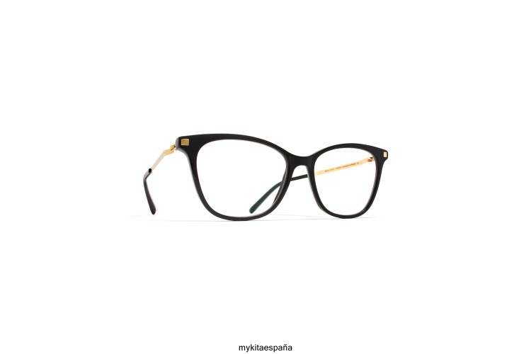 Hecho de acero inoxidable liviano y acetato delgado, sesi en negro/dorado brillante con lentes transparentes es un marco óptico de forma cuadrada de la colección de acetato mykita lite. hecho a mano en Berlín.
