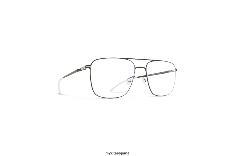 fabricado en acero inoxidable ligero, tobi en camougreen con lentes transparentes es un marco óptico de forma cuadrada de la colección mykita lite. hecho a mano en berlín.