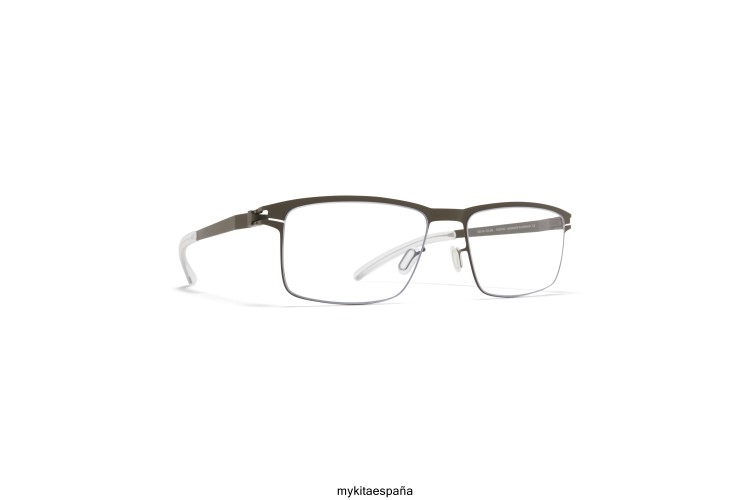 fabricado en acero inoxidable ligero, dennis en verde camuflaje con lentes transparentes es un marco óptico de forma cuadrada de la colección mykita no1. hecho a mano en berlín.